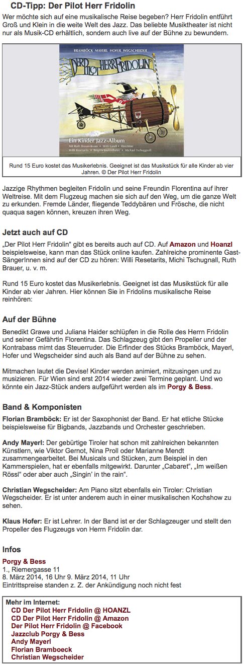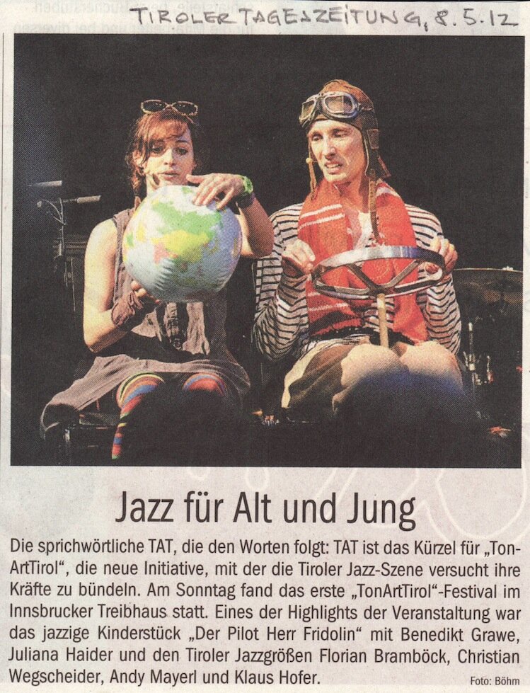 Presseberichte Tiroler Tageszeitung, 08.05.12 Tiroler Tageszeitung, 24.11.11 (PDF) kulturhaus NEWSLETTER 2011-11-26 (PDF) Kinder & Co. Magazin 12 2013